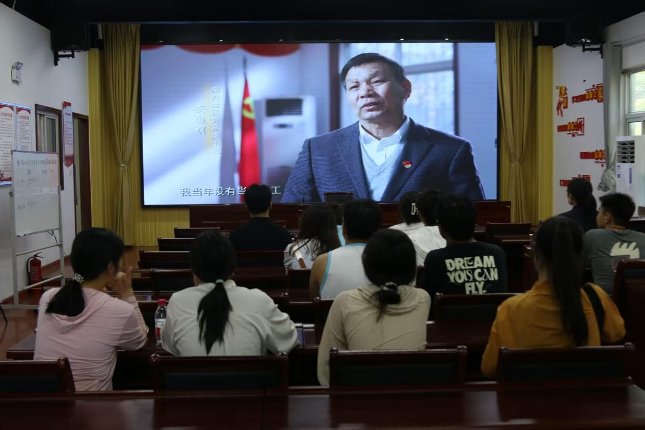 师生观看樊沟社区集体经济的股份制管理模式视频