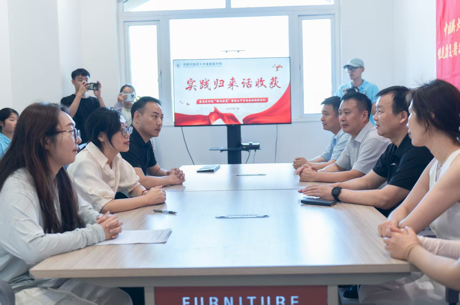 本网讯(文/张栩、李波波 图/董首赫)为深入学习贯彻习近平总书记关于“要把学习同思考、观察同思考、实践同思考紧密结合起来”的重要指示精神,引导青年学子在实践中锤炼本领、增长才干,2025年7月12日下午17时十大外围足球平台官网 在河南省长葛市许昌厚德康复医院隆重举行暑期“三下乡”社会实践活动总结交流会。十大外围足球平台官网 院长冯晓东、党委副书记李伟峰、副院长刘斌、学工办主任高宇、教学办公室副主任王娟、辅导员李波波、万秋平,许昌厚德康复医院副院长翟菲菲、办公室主任王颖、人力资源部主任李真出席会议,会议由学院分团委副书记张羽萍主持。