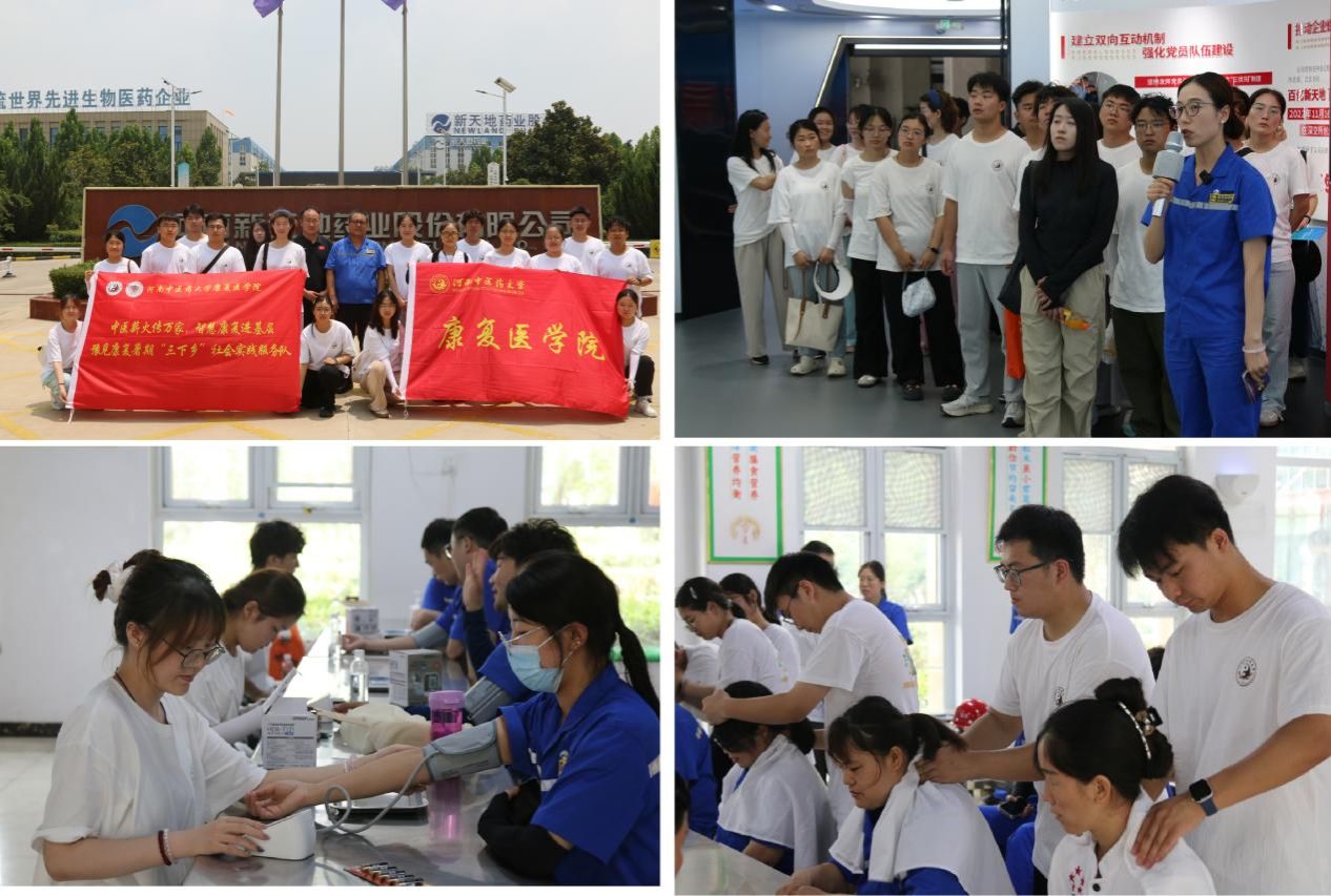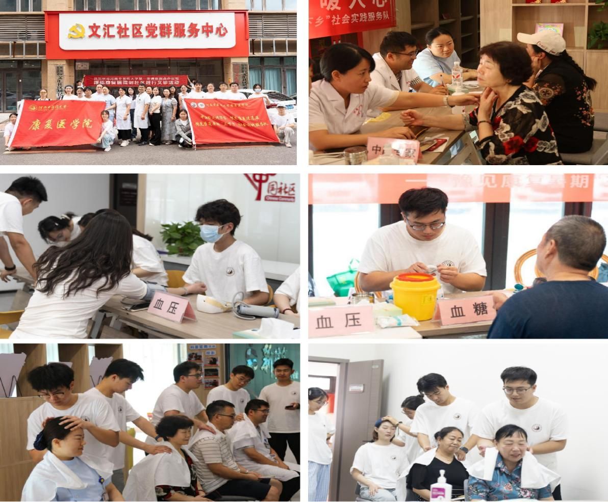 基层服务暖民心,专业实践显担当。团队联合许昌厚德康复医院,在长葛市文汇社区、康颐老年养护院开展便民服务。文汇社区活动中,养生讲座覆盖300余名居民,学生“中医小讲师”宣讲并发放养生手册;室外筛查区为居民提供血压血糖测量、脉诊咨询及推拿理疗,87%的颈肩腰腿痛居民症状得到缓解。在康颐老年养护院,120位老人享受到健康监测、个性化调理方案及康复指导,志愿者贴心搀扶行动不便老人,老人们纷纷称赞“孩子们的手法比专业按摩师还舒服”。此外,团队还走进新天地药业,为80余名员工提供颈肩调理与职业病预防宣讲,实现“研学+服务”双向衔接。