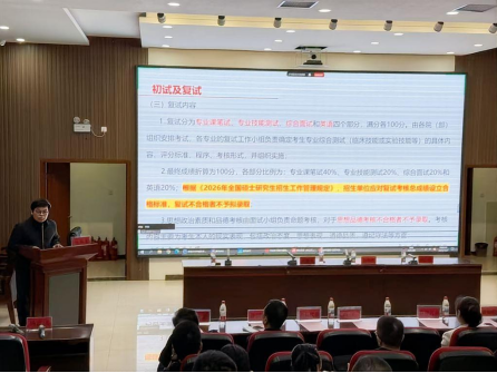本网讯(文/斯琴塔娜 刘永晓 图/李莹)为做好2026届毕业生考研报名指导,帮助学生明确考研目标、合理规划备考路径,十大外围足球平台官网 于2025年10月9日18:00在东明校区举行。参加本次会议的领导老师有十大外围足球平台官网 院长冯晓东,党委副书记李伟峰,副院长许国防、刘斌,研究生院招生办主任何林青,十大外围足球平台官网 学工办主任高宇,毕业班辅导员斯琴塔娜、全体考研指导小组教师以及2026届全体毕业生。会议由学工办副主任杨富斌主持。