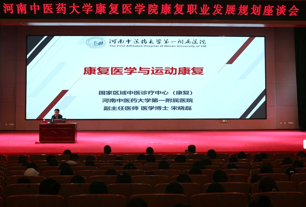 讲座中,宋主任首先介绍了康复的内涵、康复医学及运动康复的区别与联系,让学生了解到康复需要综合、协调地应用各种措施,消除或减轻病、伤、残者身心、社会功能障碍,达到或保持最佳功能水平,增强自立能力,使其重返社会,提高生存质量。结合目前康复科的发展历程介绍了康复的基本原则、工作特点以及医学常见病种及治疗方法等,加深学生对本专业的认识。最后,针对新生关于就业前景及升学的相关问题,宋主任结合自身经历经验为学生细心解答,立足当下,以点带面,进一步明确作为康复治疗师在工作当中可能会面临的机遇与挑战。并强调每个治疗师应具备四项基本能力,即创新力、服务力、责任力、传承力,希望康复学子能在日后学习工作中实现自我的价值,更好地服务于学校和社会的发展。
