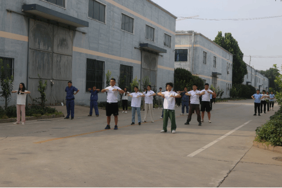 (服务团成员进行八段锦教学演示)